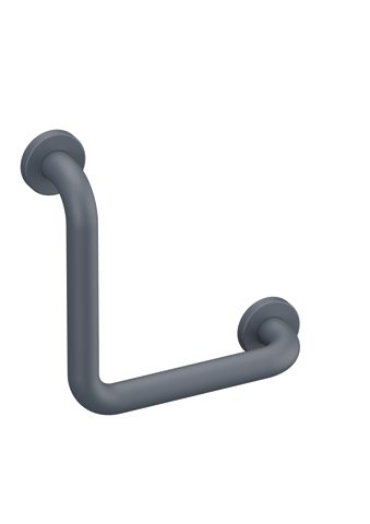 Winkelgriff der Serie 801 - senkrecht und waagerecht angeordnete, im rechten Winkel verbundene Stangen mit Stahl-Befestigungsrosetten - dient zum Festhalten und Abstützen - mit durchgehendem, korrosionsgeschütztem Stahlkern - waagerechte Länge 255 mm, senkrechte Länge 255 mm - 89 mm tief, lichter Abstand zur Wand 56 mm, Stangendurchmesser 33 mm, Rosettendurchmesser 70 mm - Montage an der Wand mit wandspezifischem Befestigungsmaterial und Rosetten von HEWI - links- und rechtsseitig montierbar - aus mattem Polyamid in den HEWI Farben 99 (Reinweiß), 98 (Signalweiß), 97 (Lichtgrau), 95 (Felsgrau) und 92 (Anthrazitgrau) - Aufrüstsatz WC-Papierhalter 801.50B011 und Aufrüstsatz WC-Spülauslösung (Funk) 801.50B060 nachrüstbar - in HEWI Farbe 92 (Anthrazitgrau)