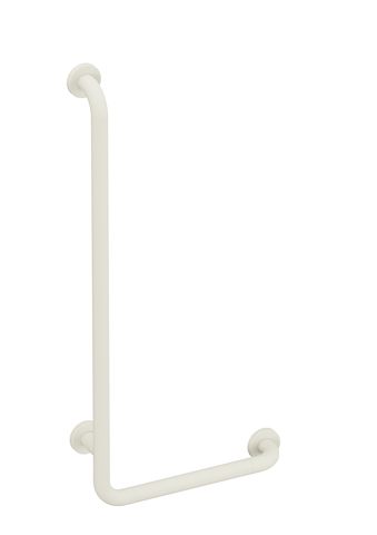 Winkelgriff der Serie 801 - senkrecht und waagerecht angeordnete, im rechten Winkel verbundene Stangen mit Stahl-Befestigungsrosetten - dient zum Festhalten und Abstützen - mit durchgehendem, korrosionsgeschütztem Stahlkern - waagerechte Länge 400 mm, senkrechte Länge 900 mm - 89 mm tief, lichter Abstand zur Wand 56 mm, Stangendurchmesser 33 mm, Rosettendurchmesser 70 mm - Montage an der Wand mit wandspezifischem Befestigungsmaterial und Rosetten von HEWI - links- und rechtsseitig montierbar - aus mattem Polyamid in den HEWI Farben 99 (Reinweiß), 98 (Signalweiß), 97 (Lichtgrau), 95 (Felsgrau) und 92 (Anthrazitgrau) - Aufrüstsatz WC-Papierhalter 801.50B011 und Aufrüstsatz WC-Spülauslösung (Funk) 801.50B060 nachrüstbar - in HEWI Farbe 99 (Reinweiß)